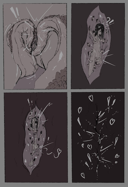 The eyes were gone. In their places, now there were some new orifice-like organs growing all over the inside of a flesh tunnel. It intrigued her despite their even more disturbing presentation than before. It felt welcoming and, in its own way, playful.